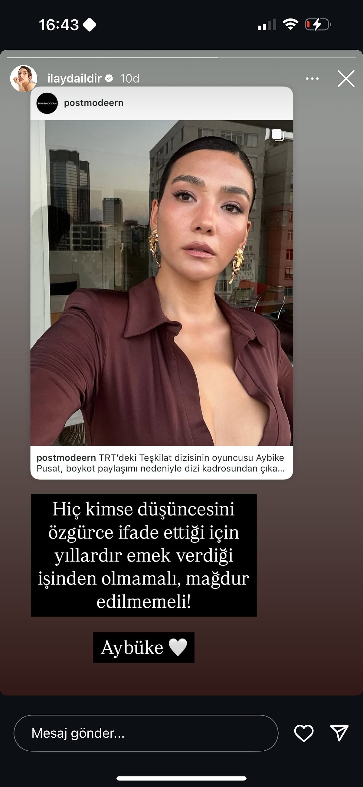 Teşkilat dizisinden TRT’nin kovduğu Aybüke Pusat’tan günler sonra ilk paylaşım